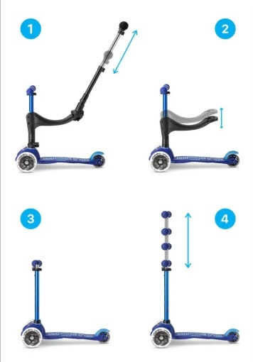 Самокат Mini Micro 3 в 1 Deluxe Plus – это эволюционный самокат, имеющий родительскую ручку. Когда малыш устанет или больше не захочет передвигать ножки, вы можете взять самокат под контроль и вести его в том числе влево/вправо с помощью родительской ручки. Ноги ребенок будет держать на имеющейся опоре у основания руля, которую можно регулировать вверх или вниз в зависимости от роста ребенка. Управлять самокатом с помощью родительской ручки очень практично и безопасно. Кроме того, в отличие от других моделей самокатов с родительскими ручками, ручка Micro является телескопической и может регулироваться под рост родителя.